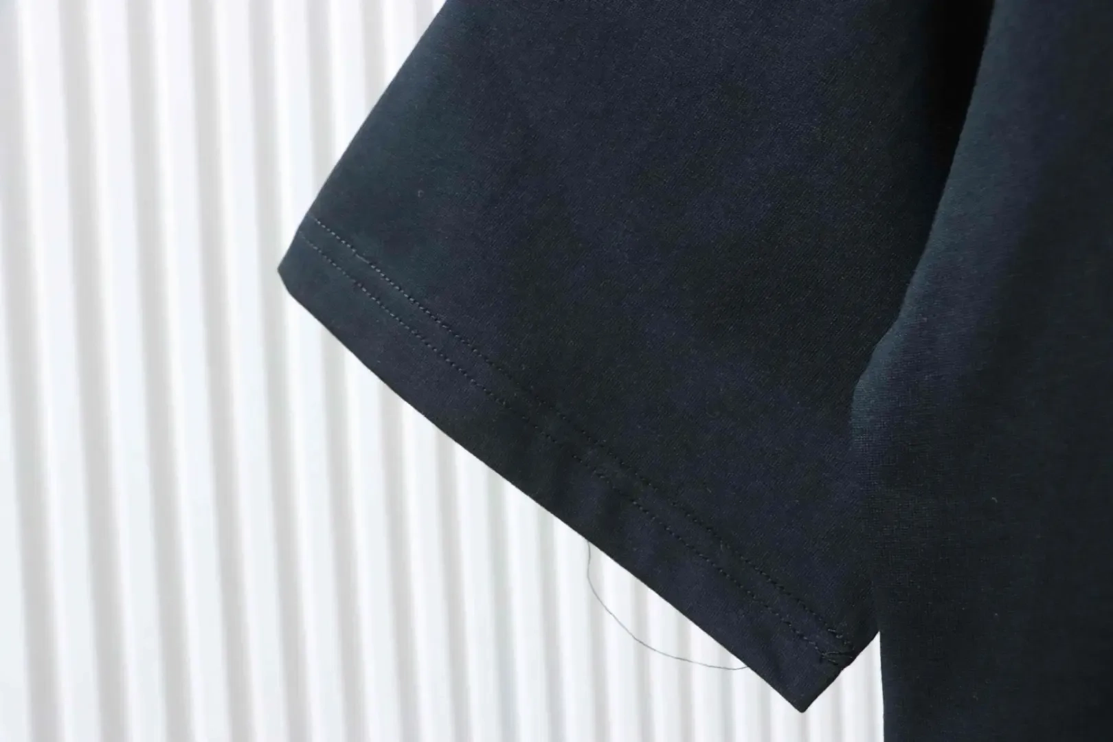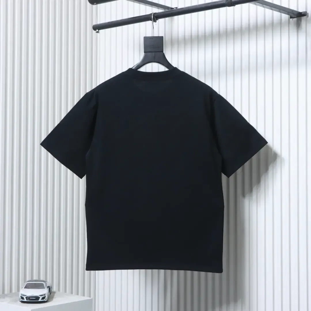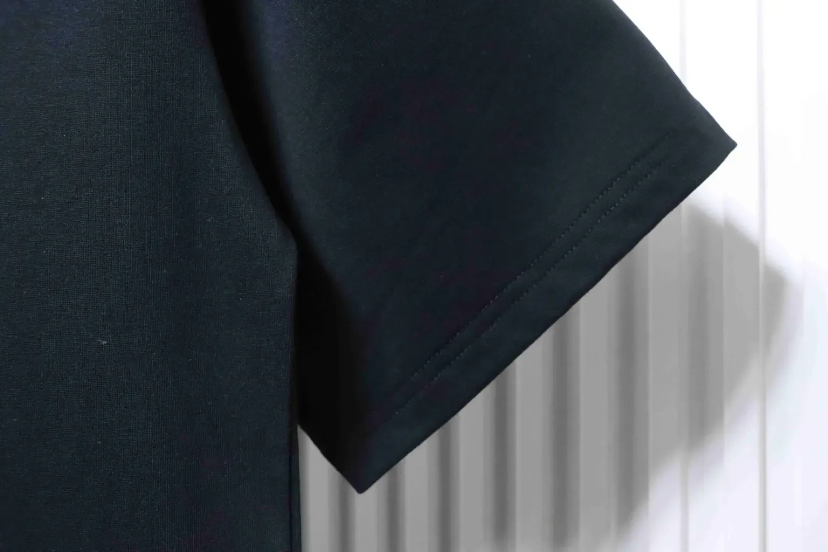 Short-sleeved T-shirt with a red and green embroidered logo in a bow shape on the shoulders and sleeves.