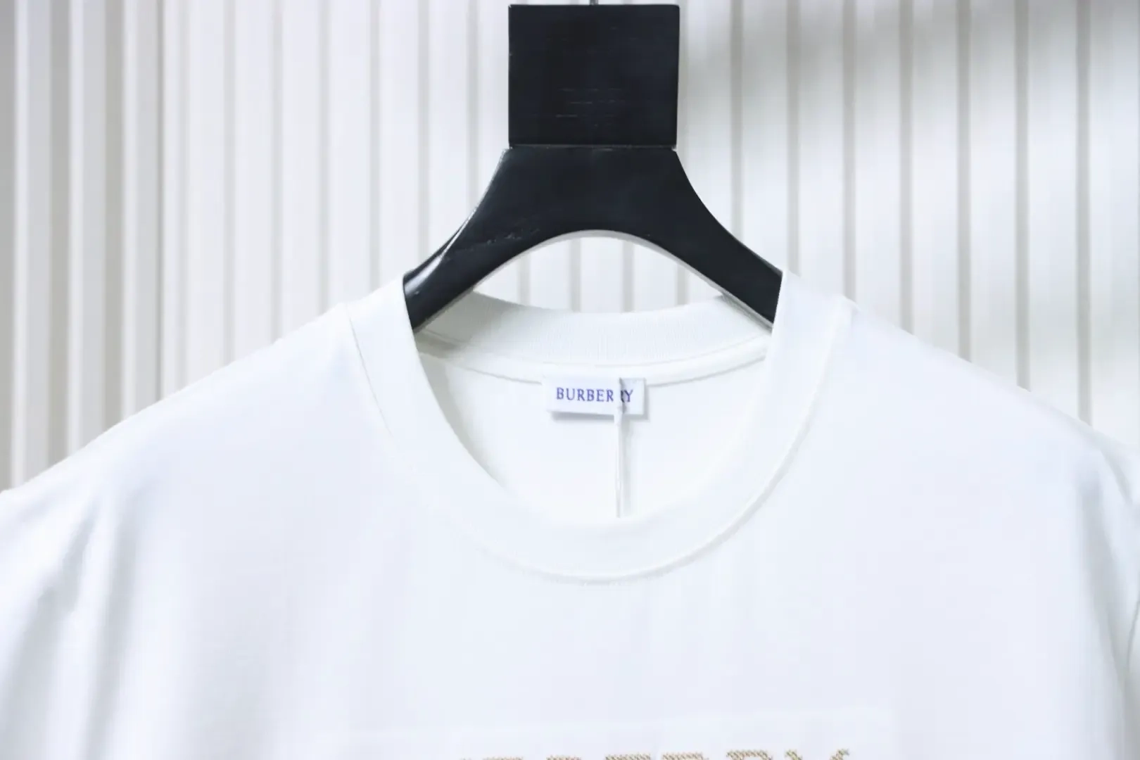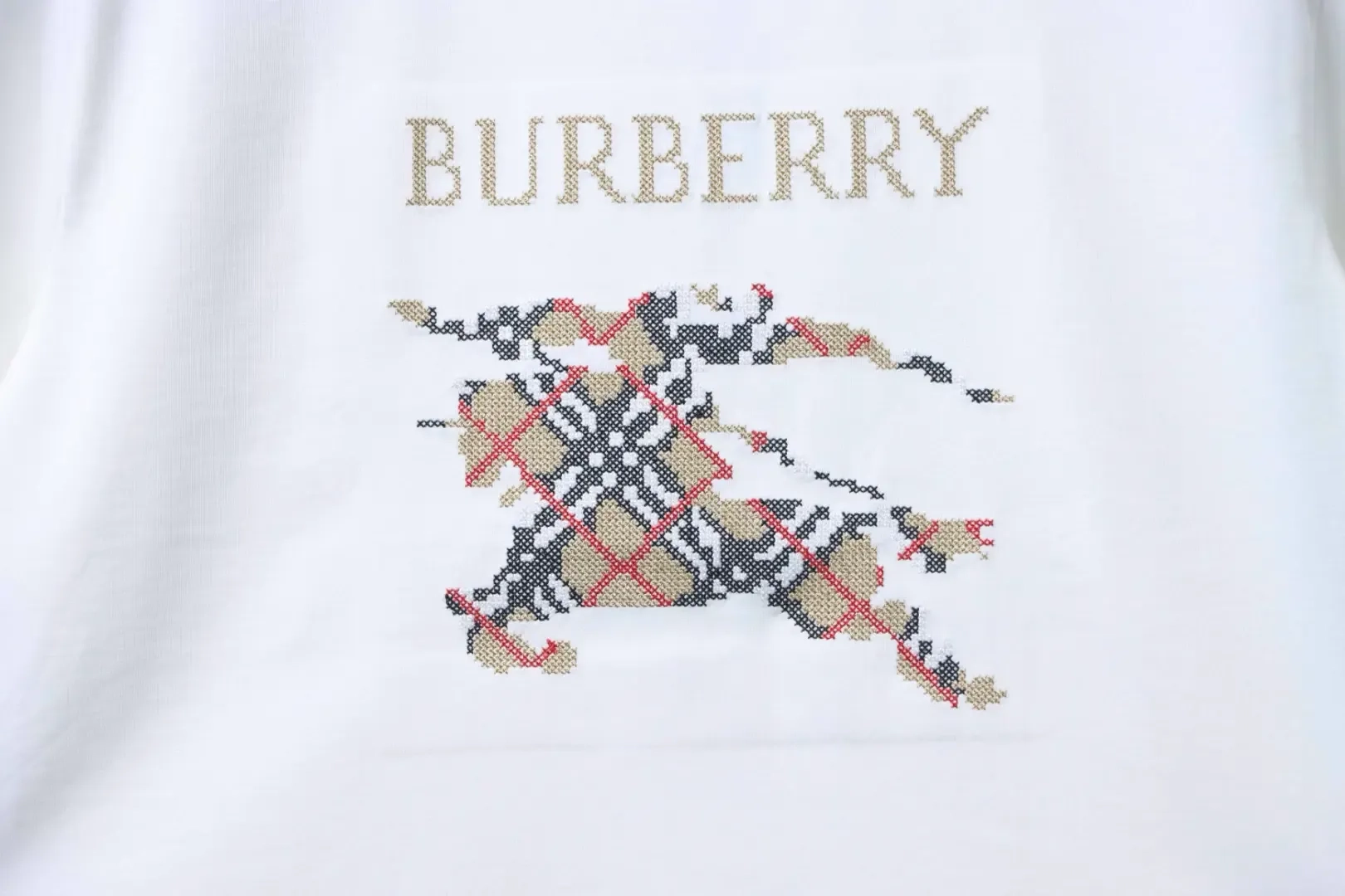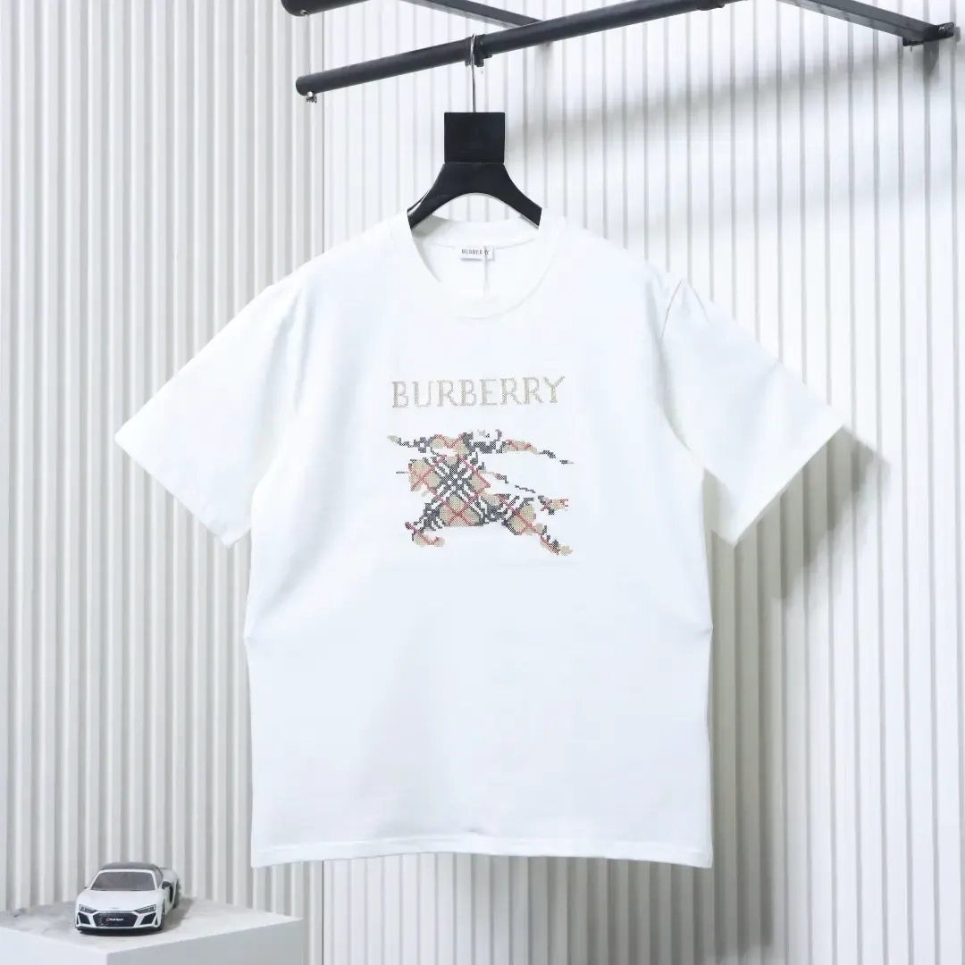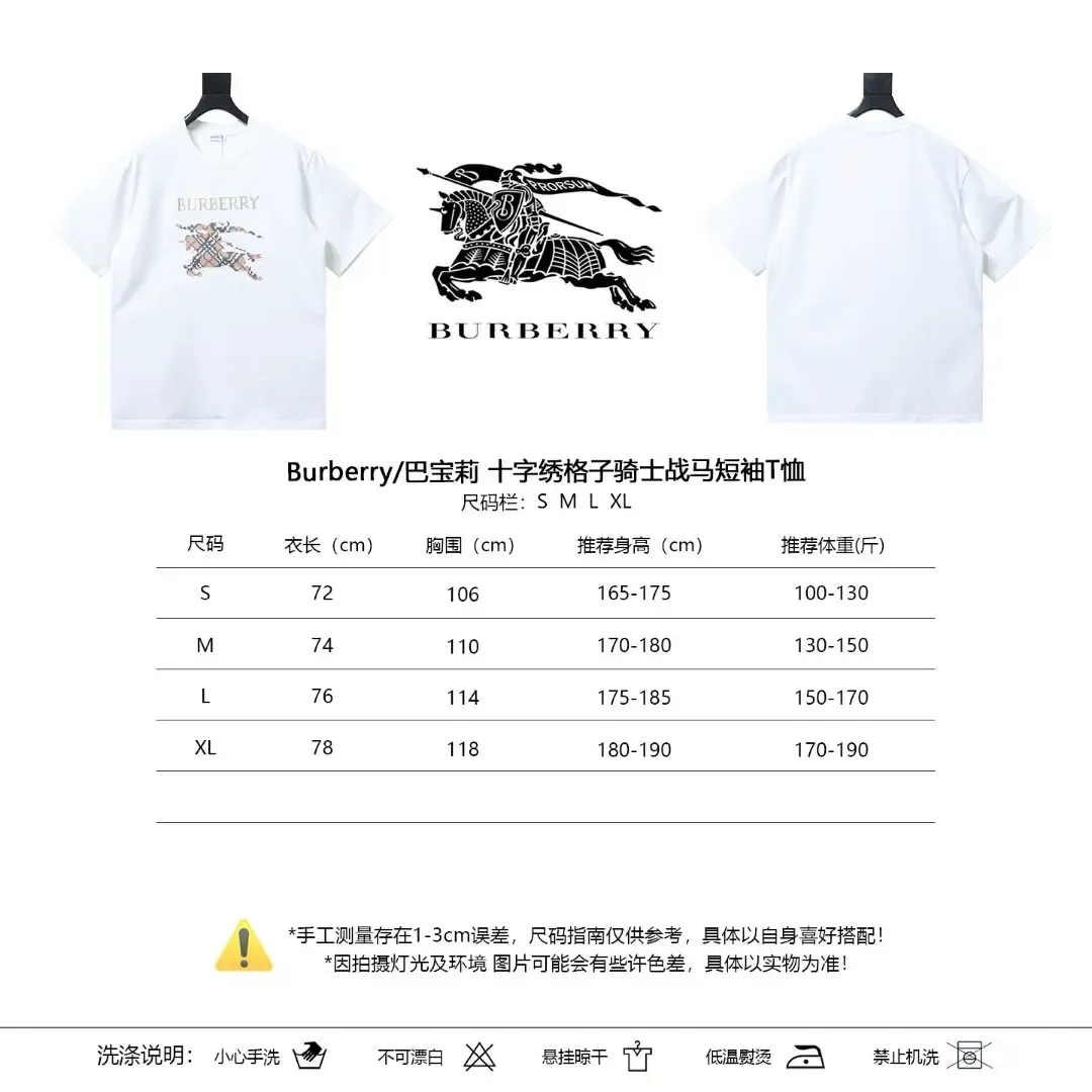 Short-sleeved T-shirt with cross-stitched checkered pattern, knight and warhorse