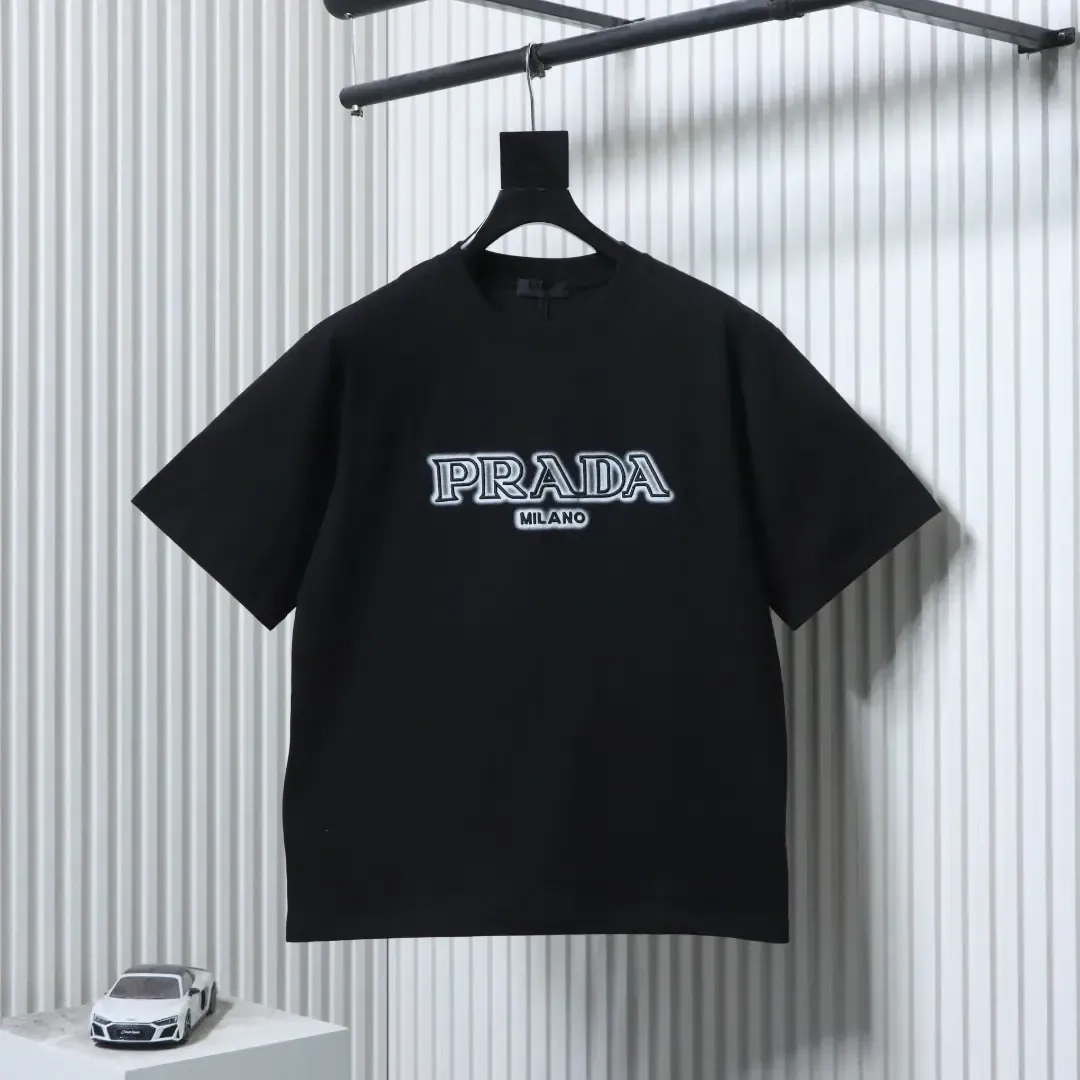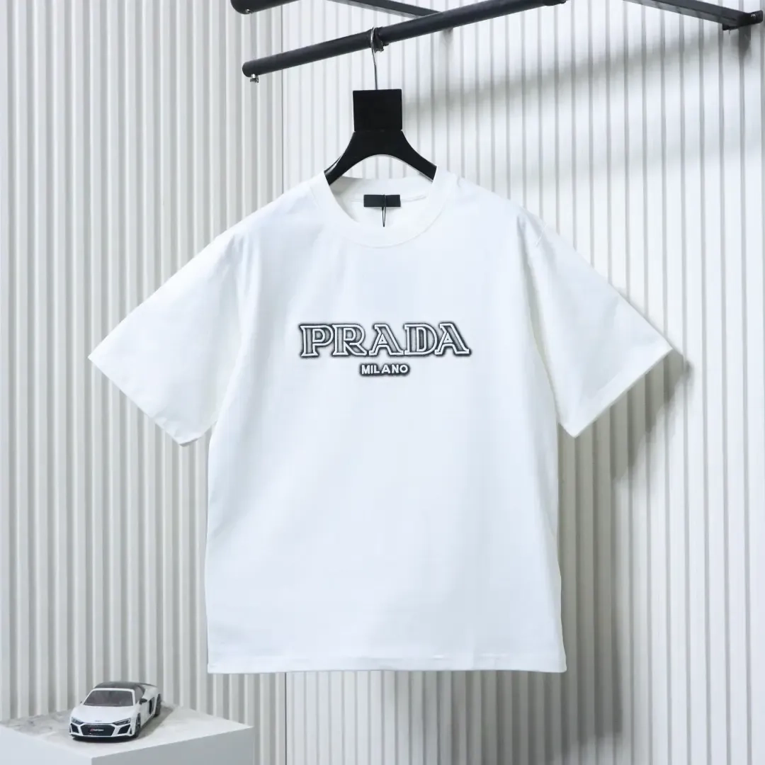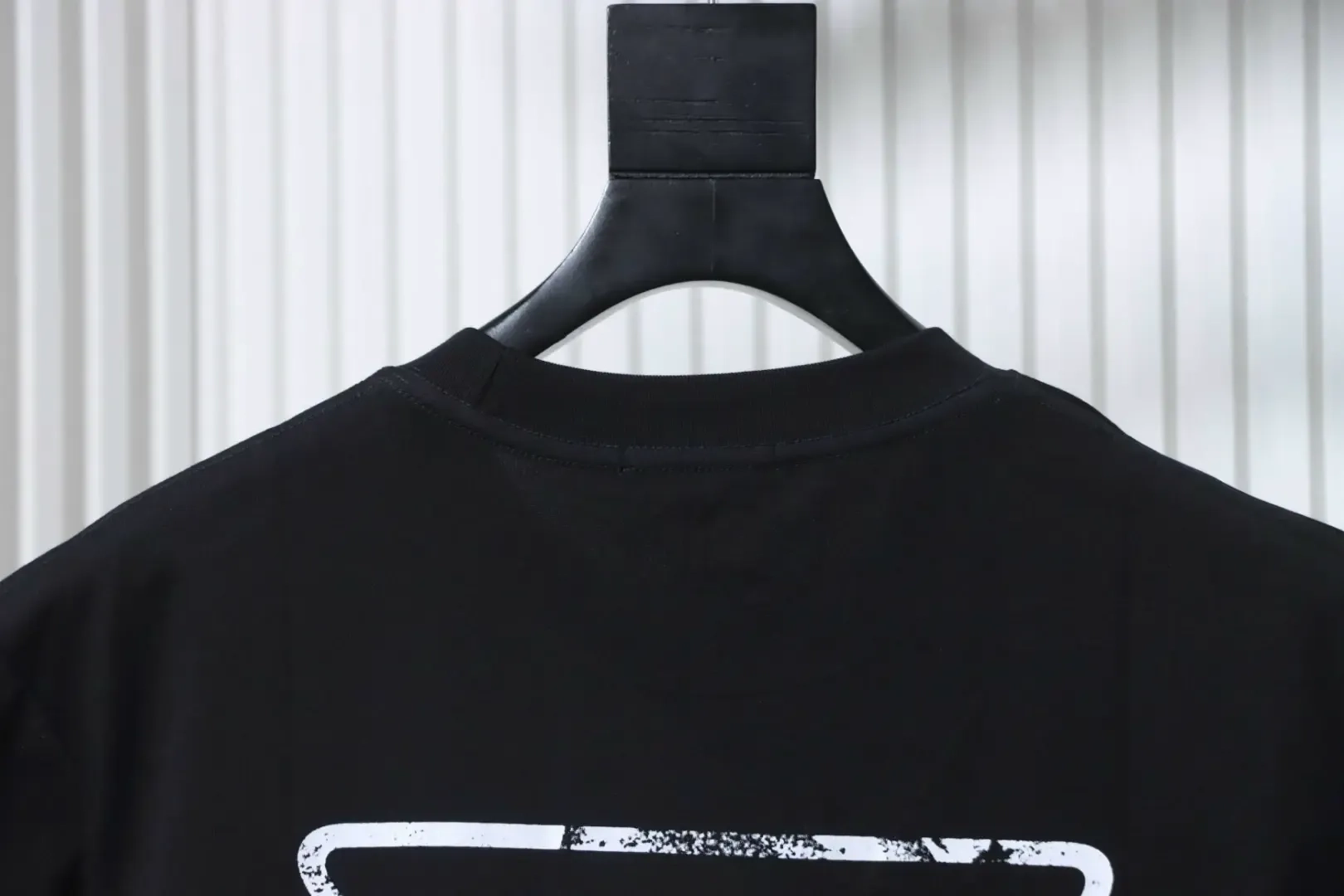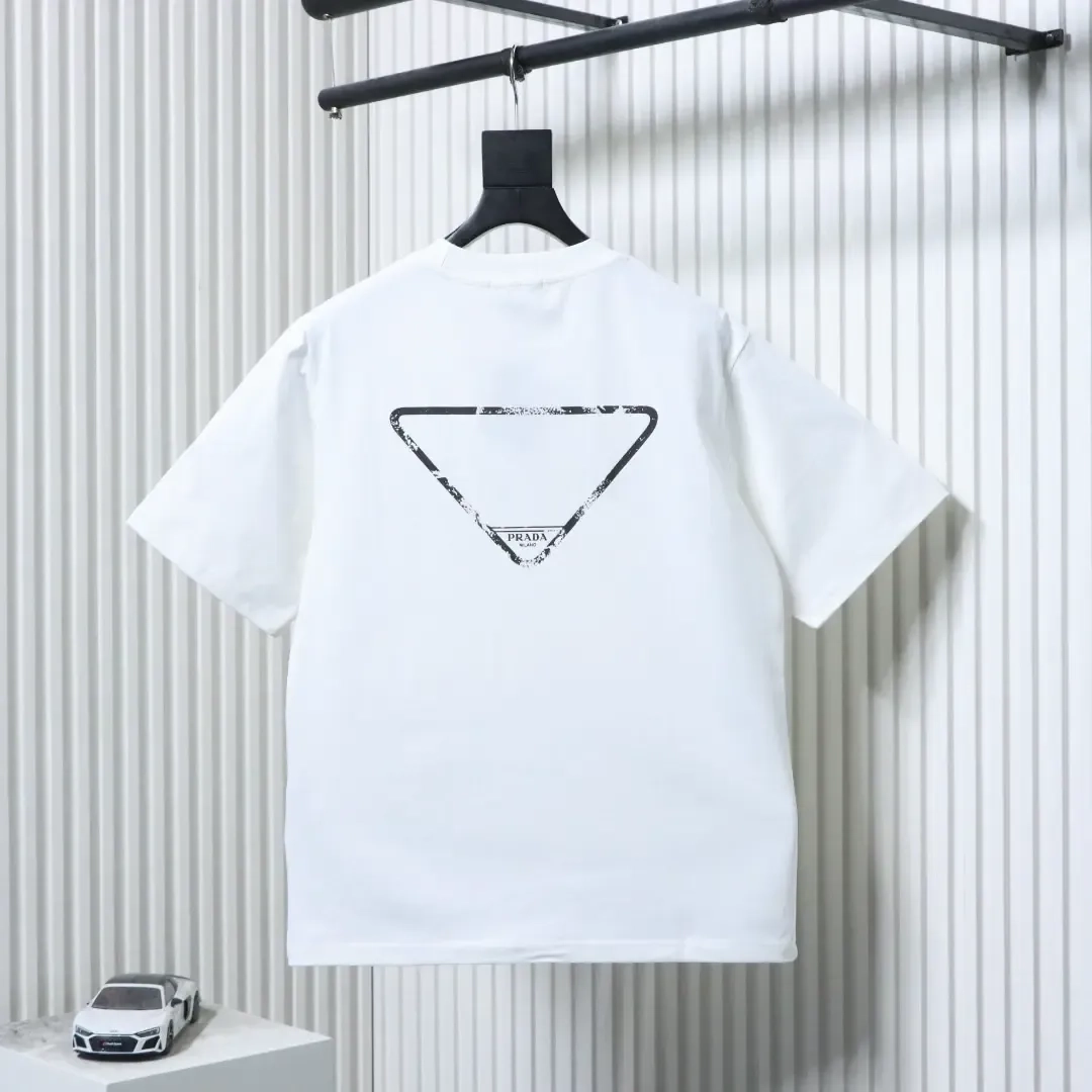 Short-sleeved T-shirt with speckled logo embroidery pattern and triangular logo print on the back