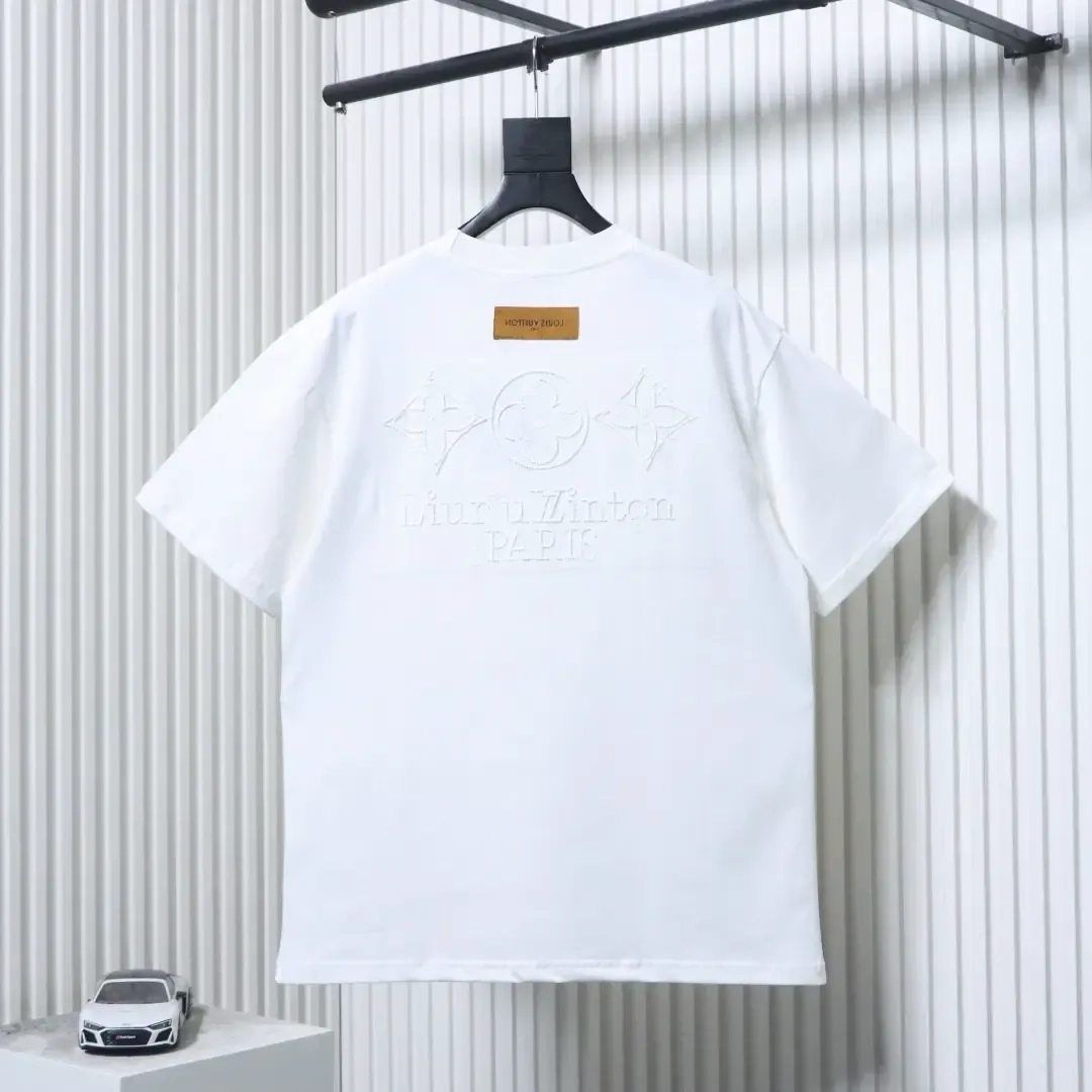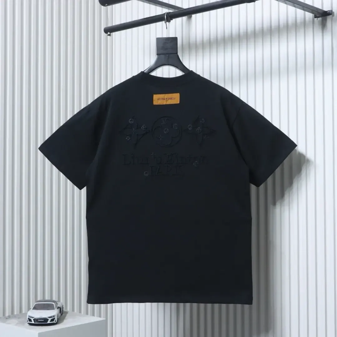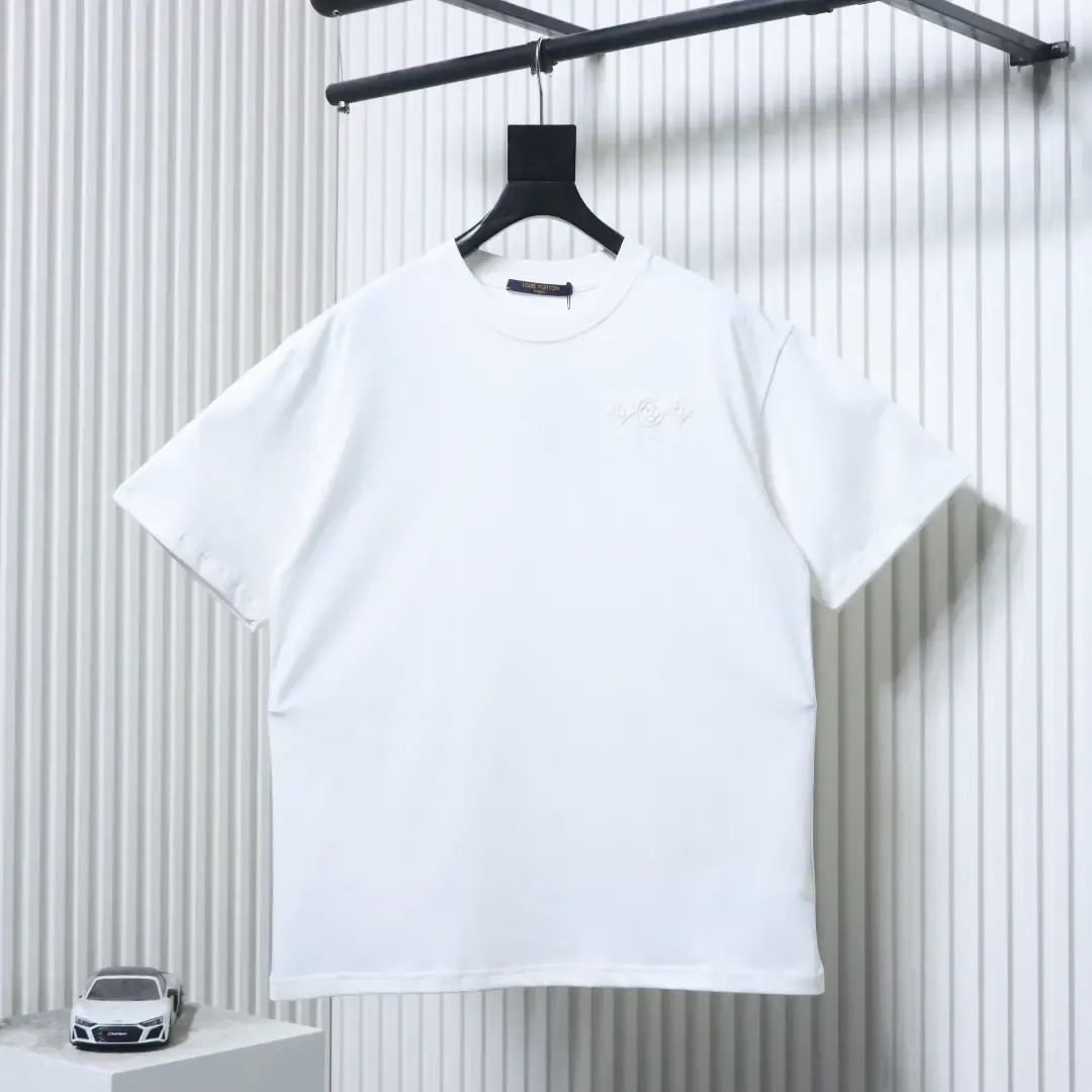Short-sleeved shirt with three-dimensional logo embroidery