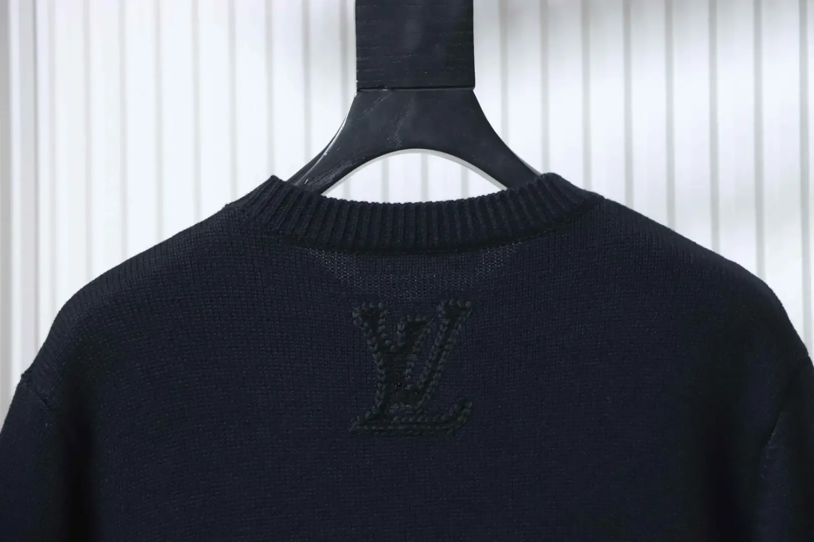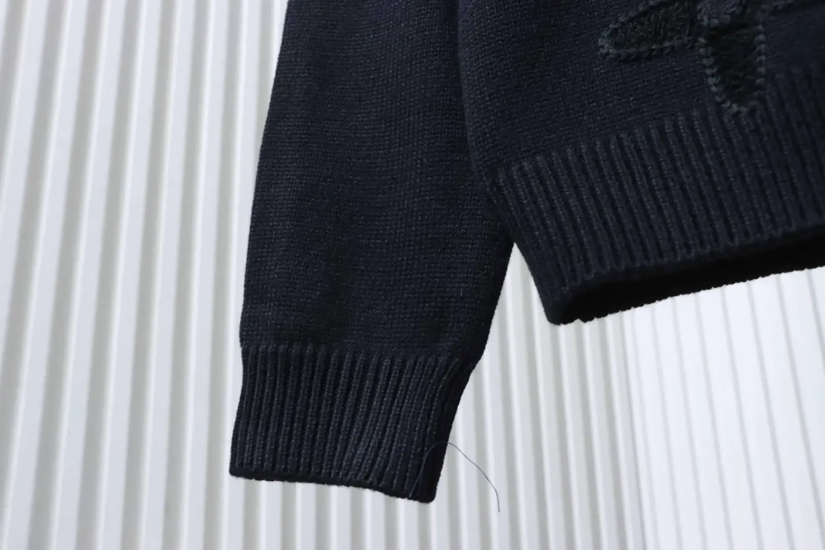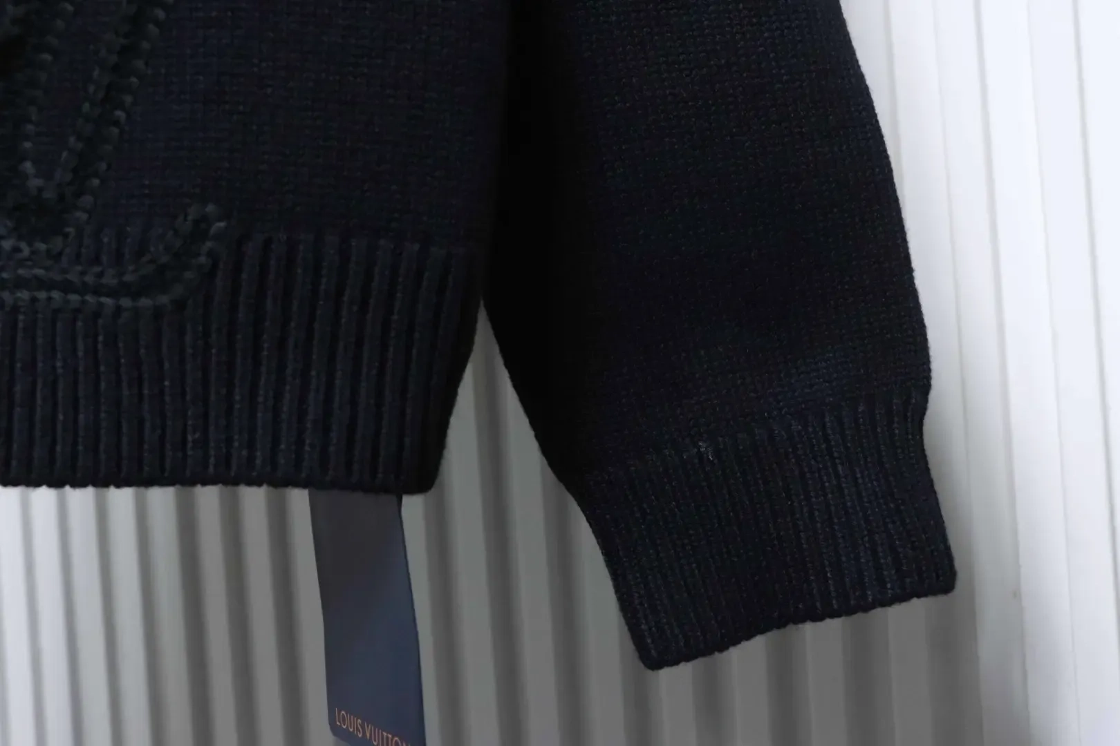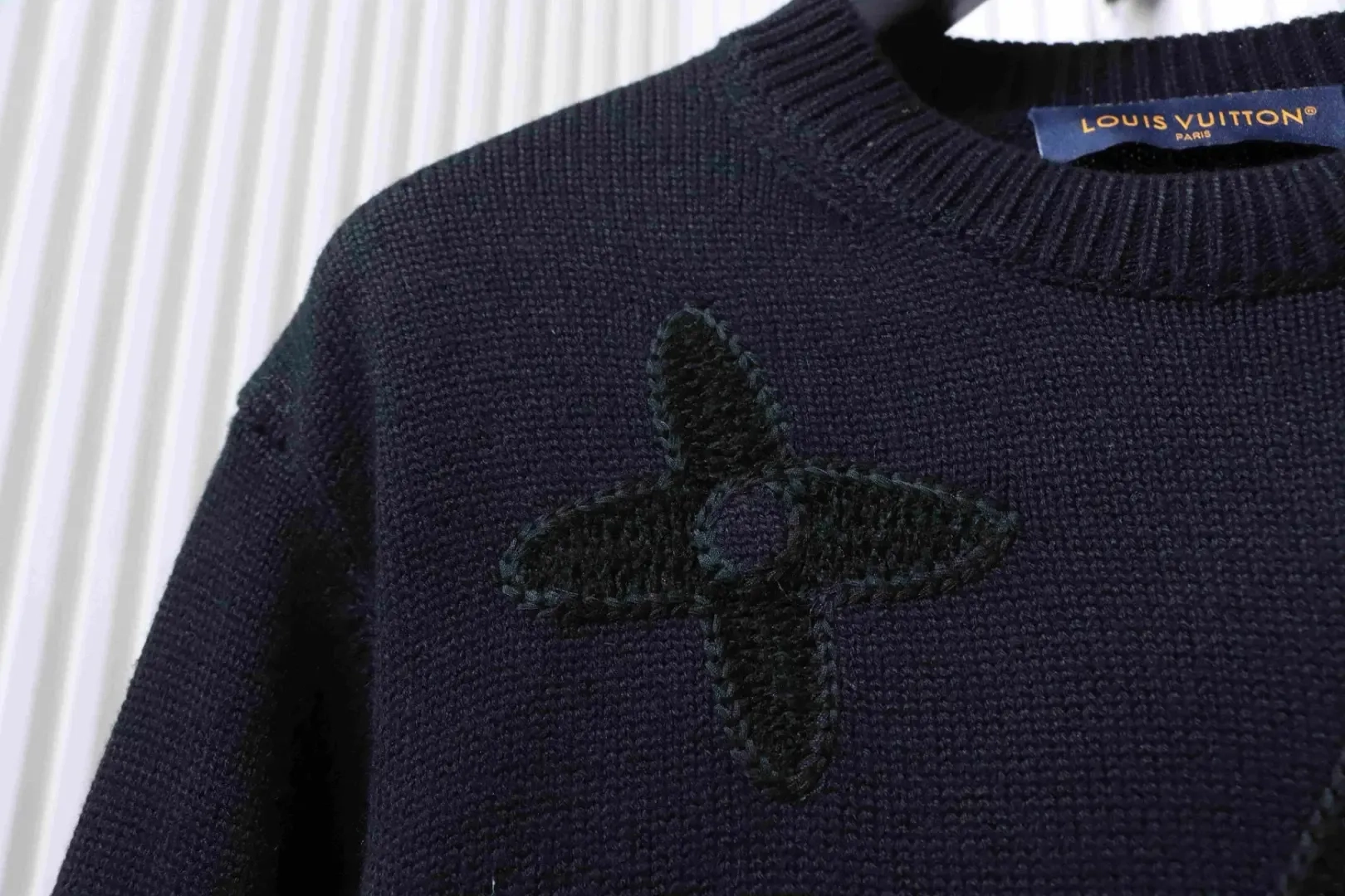 Sweater Made Of Dark Jacquard Fabric With Embroidered Monogram Pattern Sweater Made Of Dark Jacquard Fabric With Embroidered Monogram Pattern