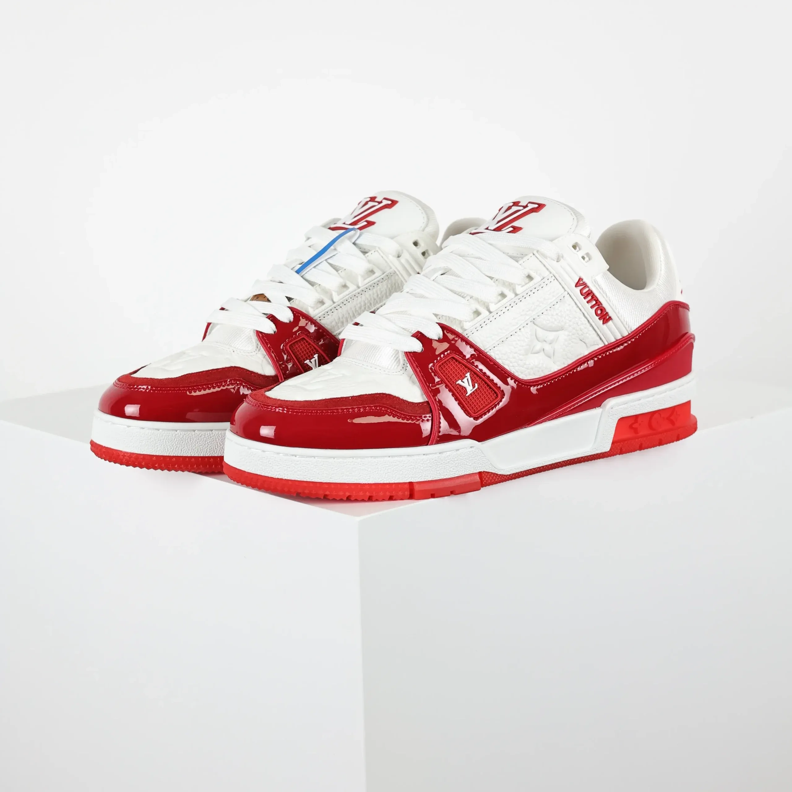Trainer Monogram Sneakers In Grained Calfskin White And Red Patent Leather