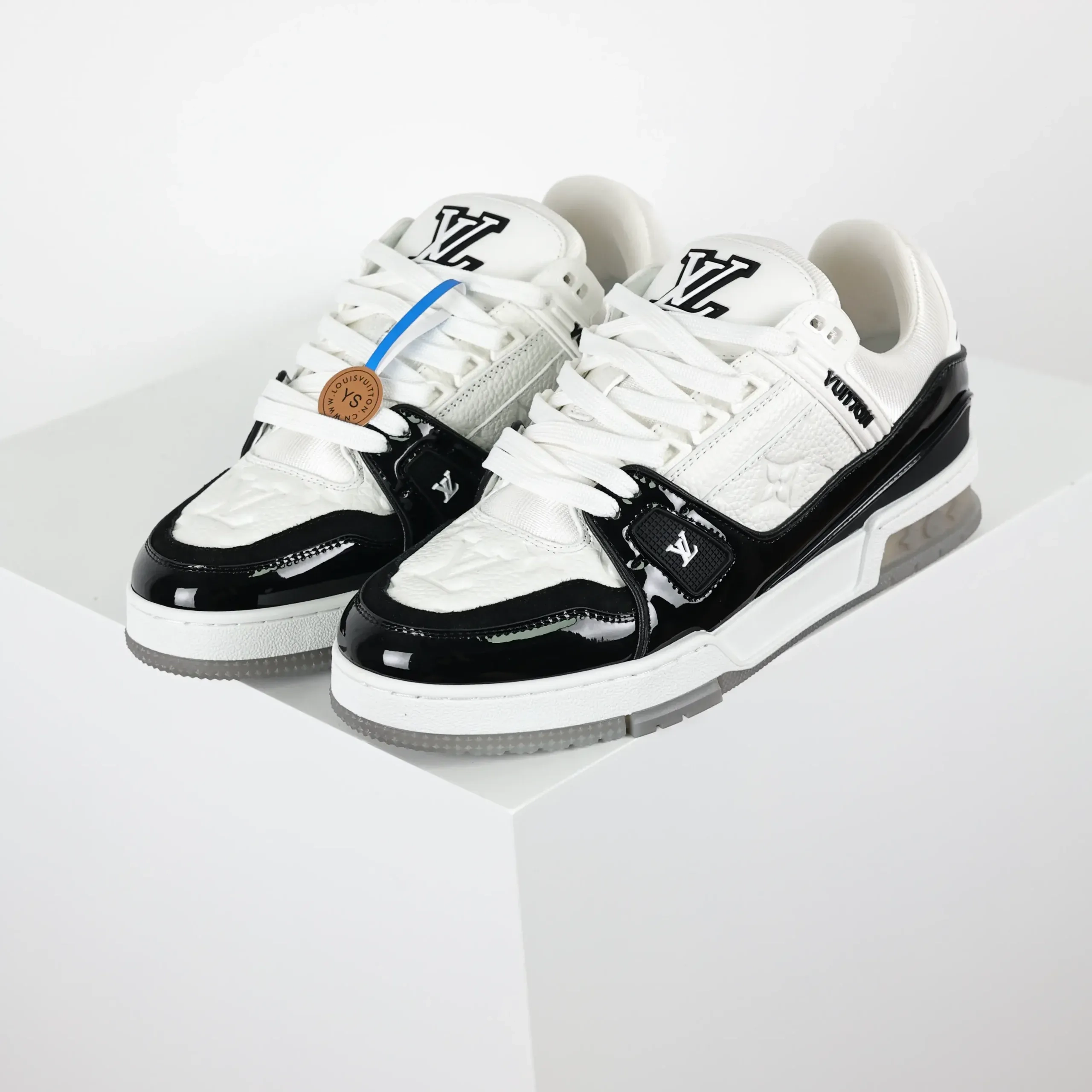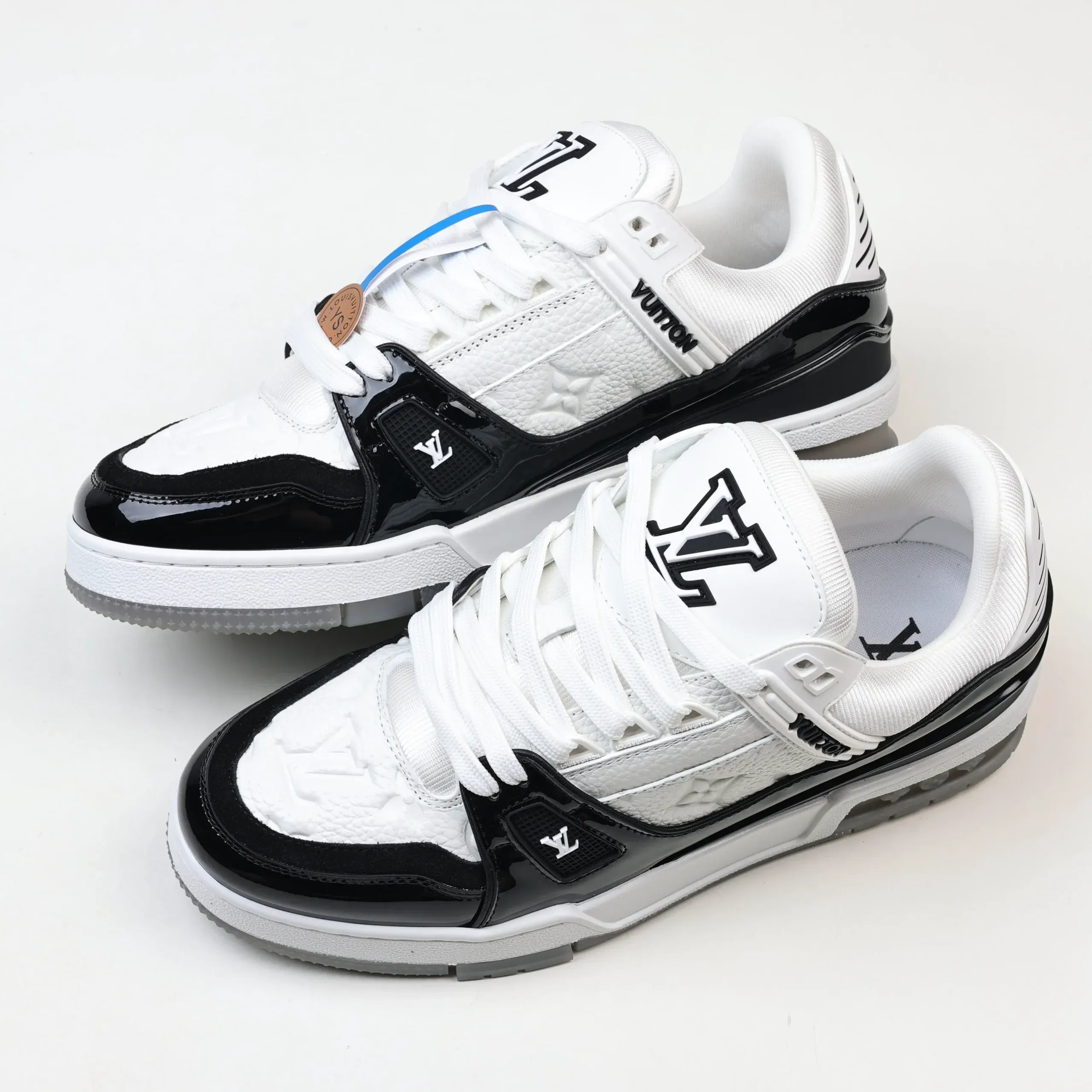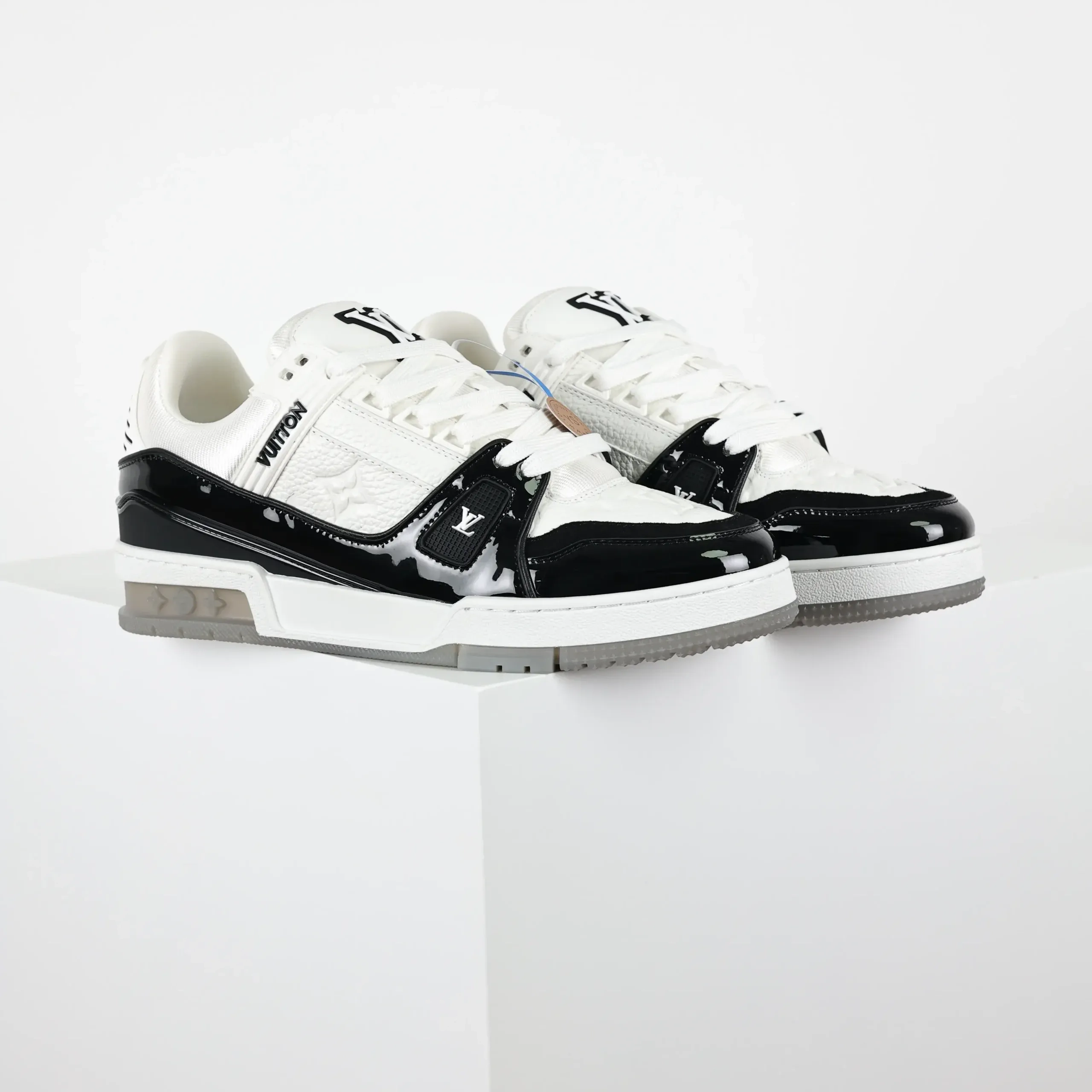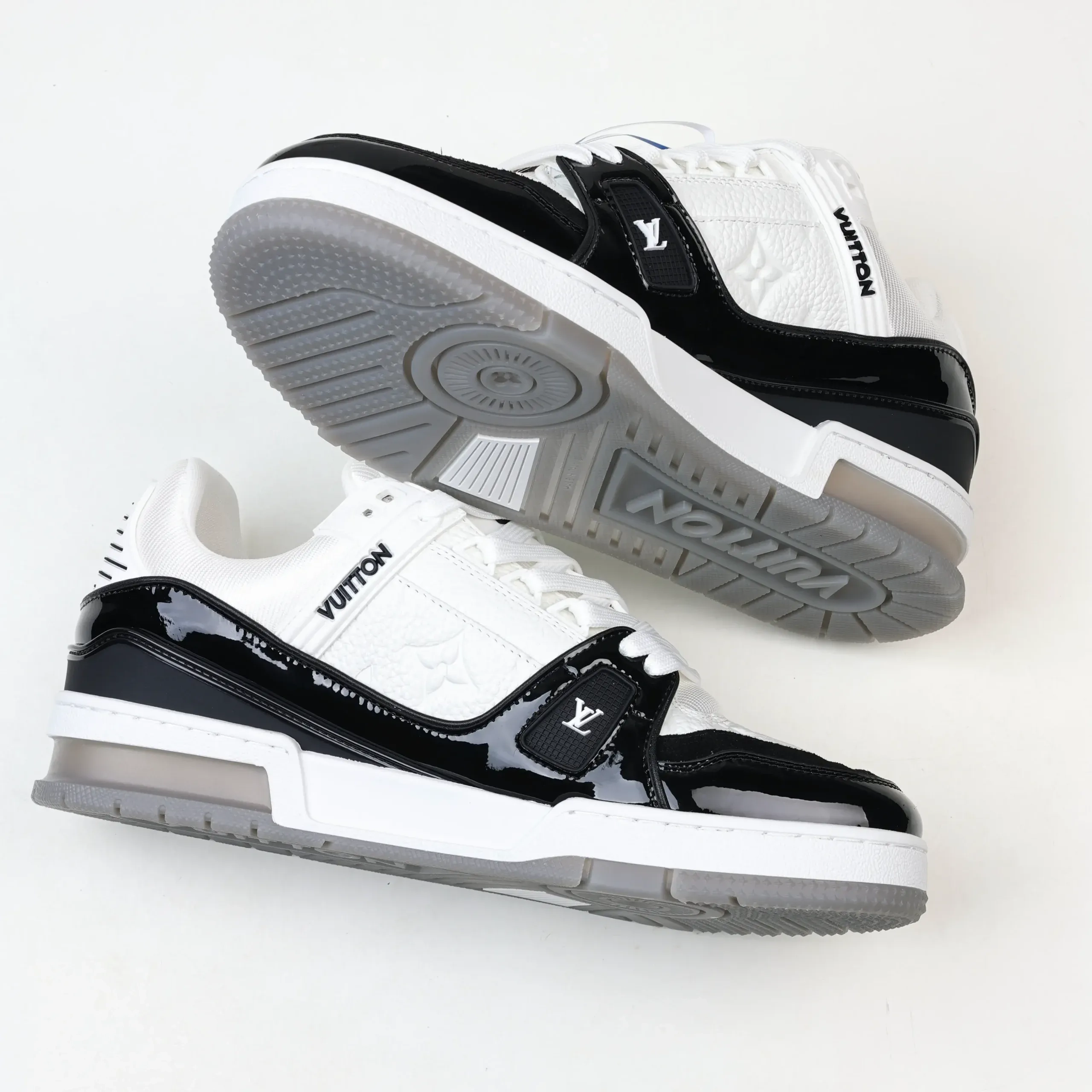 Trainer Monogram Sneakers In White Grained Calfskin And Black Patent Leather