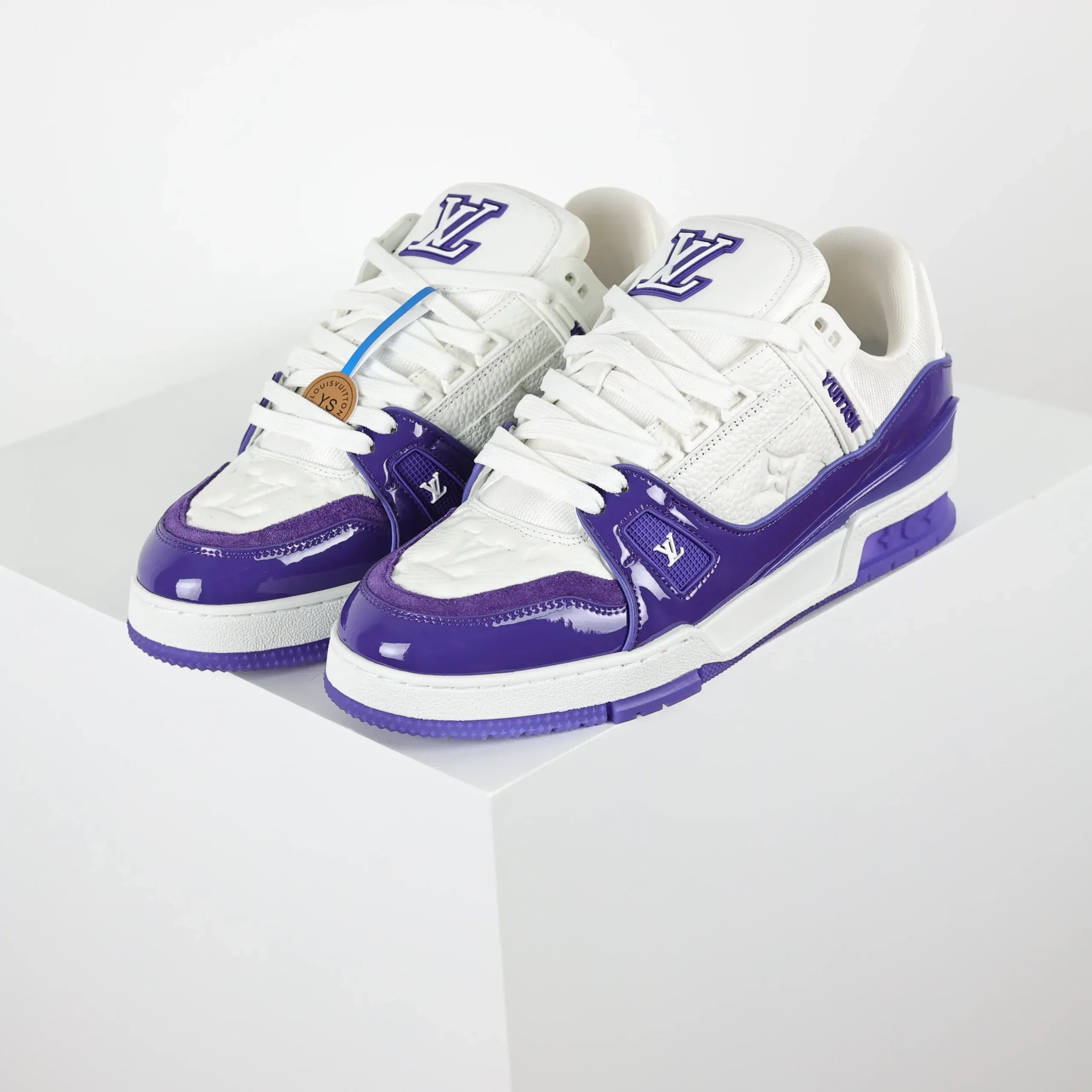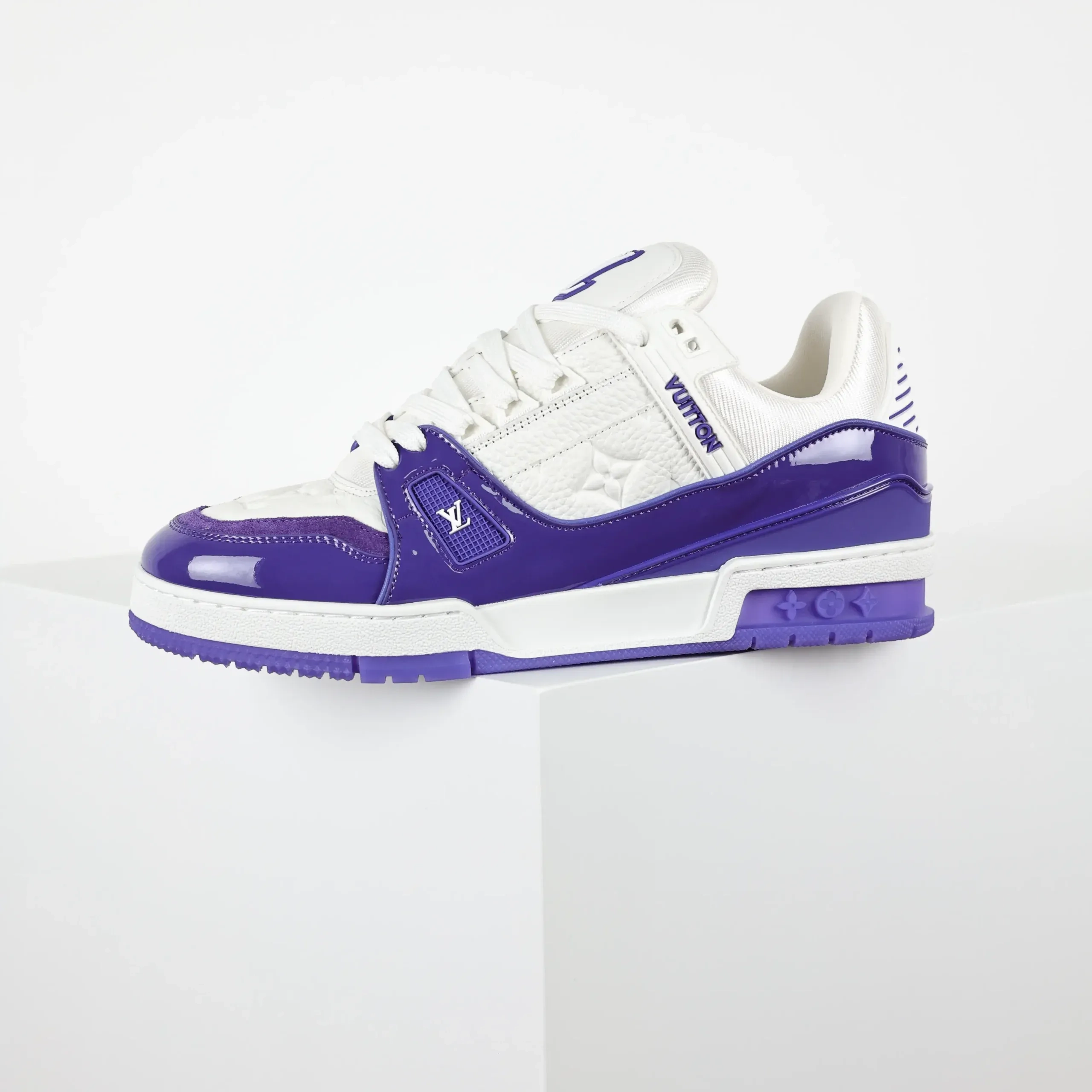 Trainer sneaker in purple grained calfskin and patent leather with Monogram logo