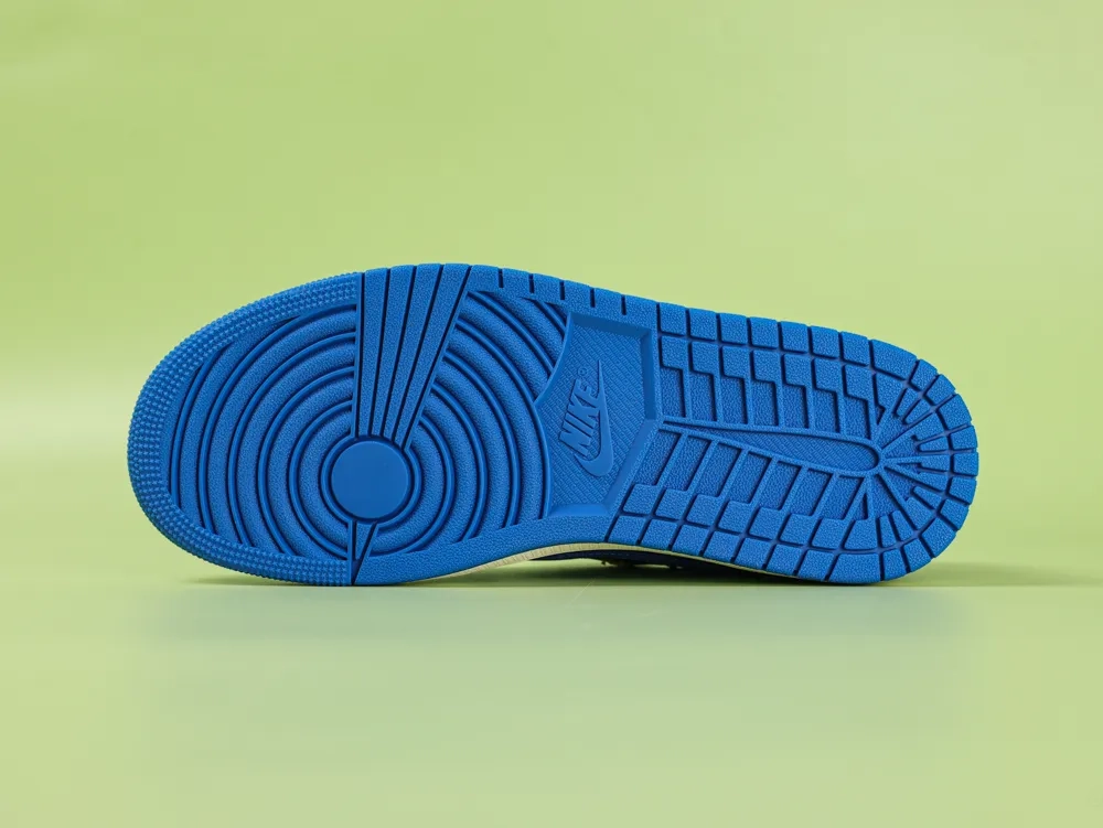 The Jordan 1 Retro Low NRG “Storm Blue” is based on the classic silhouette of the Jordan 1 Low With its deep blue hue and bright red details, the Storm Blue Jordan 1 Retro Low skillfully blends retro and modern elements. The upper is constructed from premium white leather and dark blue suede, creating a layered effect that perfectly showcases Union LA’s reinterpretation of the classic design.