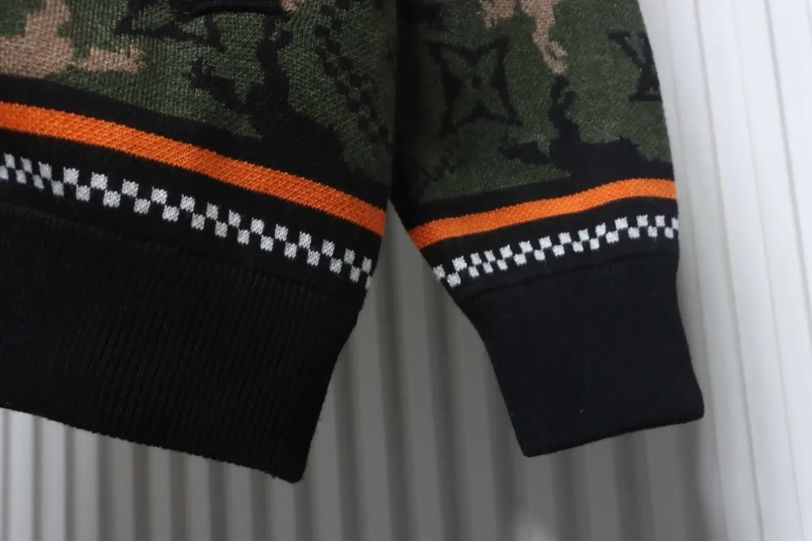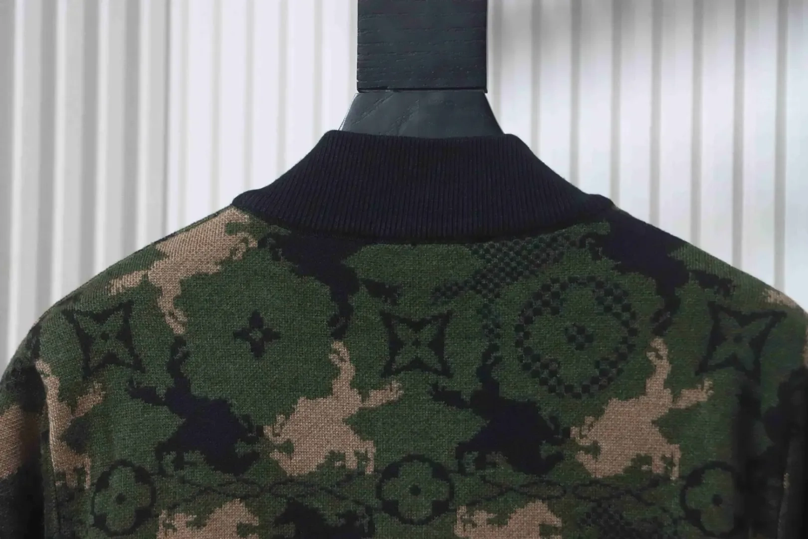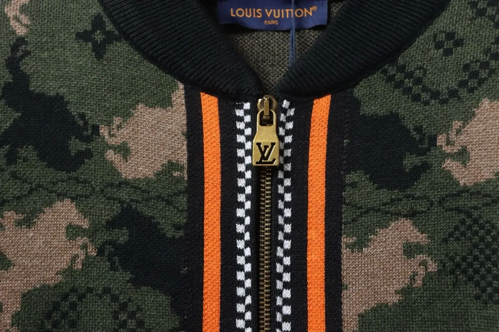 • Micro-Damier trim adorns the zipper placket, hem, and cuffs. The entire design is in the Geo Rodeo jacquard style, with the zipper, hem, and cuffs embellished with specially woven and dyed micro-Damier yarn. The all-over zip-up jacquard design pairs perfectly with trousers and skirts from the same season for a stylish look.